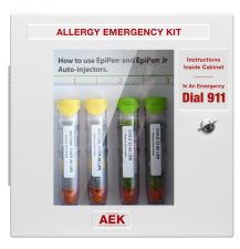 The Original Allergy Emergency Kit™ cabinet is intended to finally make Epinephrine as available as a fire extinguisher or defibrillator. It is designed to be hung in school lunch rooms and hallways as well as any public place - as close to the point of need as possible.